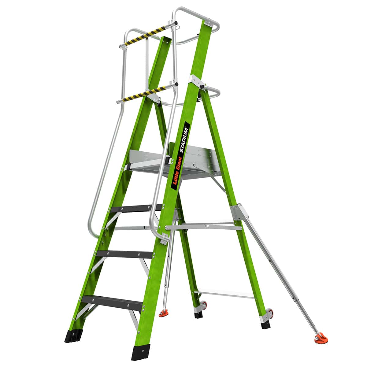 The Little Giant Stadium Series 2.0 enclosed work platform now with improved side-mounted stabilising bars for unparalleled stability and safety. It is constructed of non-conductive, high strength fibreglass. It protects operators in a fully enclosed working platform, allowing them to work safely and quickly with two hands. The Stadium step has wide rungs that help reduce foot fatigue.