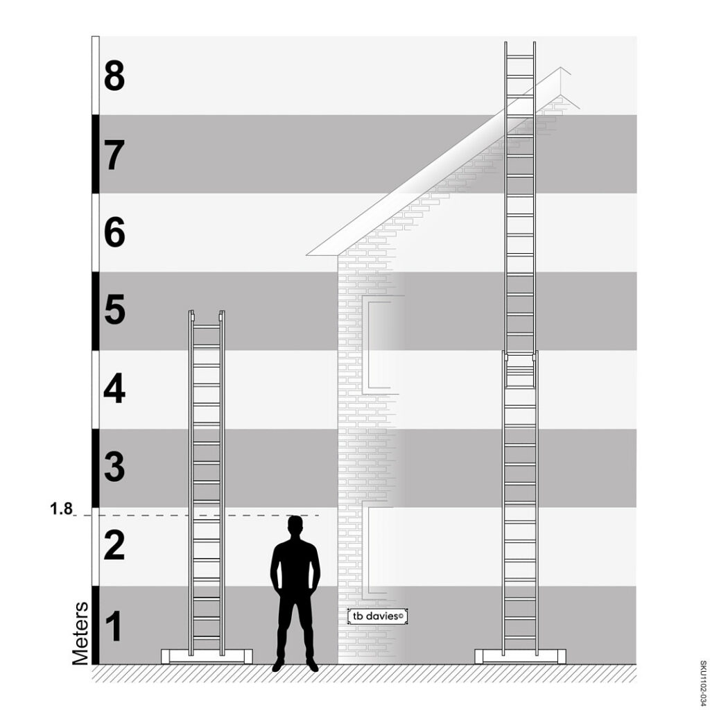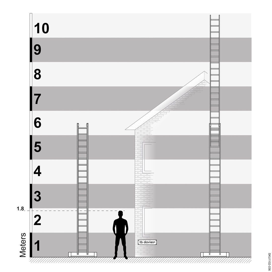 - Stabilising bar supplied with ladders over 3m – requires fitting before first use